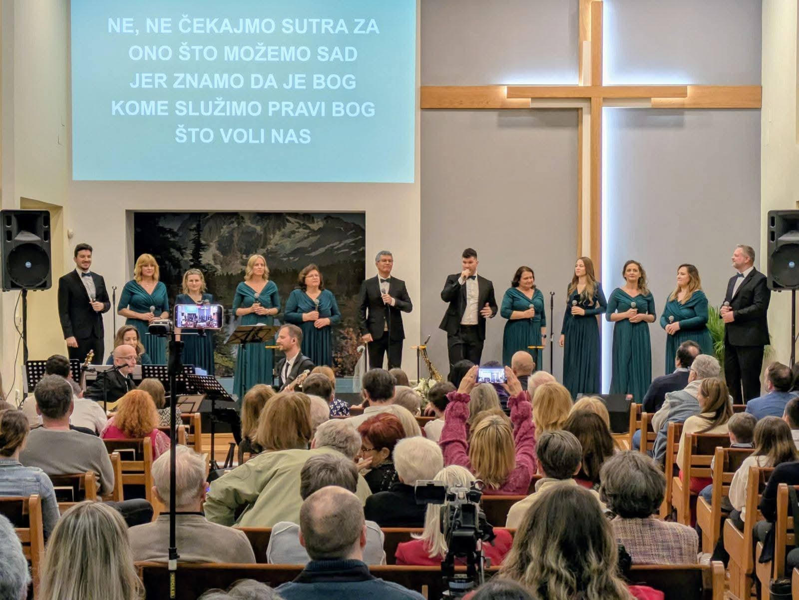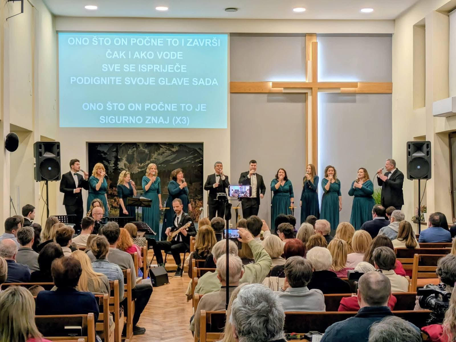 Uvečer istog dana održan je koncert duhovne glazbe Gospel ansambla Agape, koji je zaokružio lijep i sadržajan subotnji dan u Zagrebu. Iako smo bili zabrinuti za posjećenost tog koncerta, jer subota je doista bila bogato ispunjena sadržajima, zahvaljujući našim molitvama Bogu i uporabi suvremene tehnologije i društvenih mreža, dvorana je bila puna potpuno novih lica. Hvala Bogu za sve ljude koji Ga traže i dolaze u dodir s nama na našim bogoslužjima i programima!
