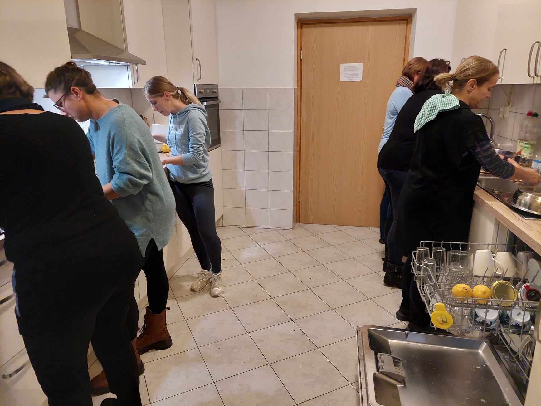 Od besed so prešli k dejanjem in kuhinja je kmalu zaživela, lonci zažvenketali, pete so zapele, ko so se udeleženci urno obračali in sekljali, rezali, mešali, pekli, kuhali in se vmes pomenkovali. Marjanca je bila pomoč pri roki in rada pomagala, kadar je nastopila zagata.