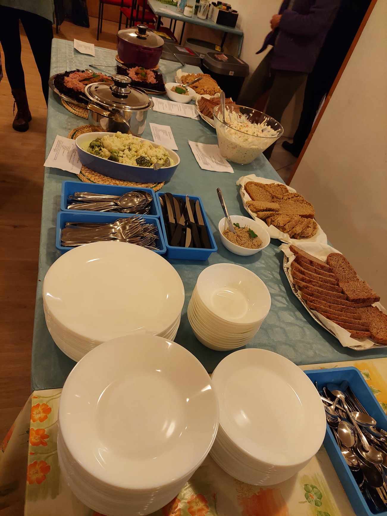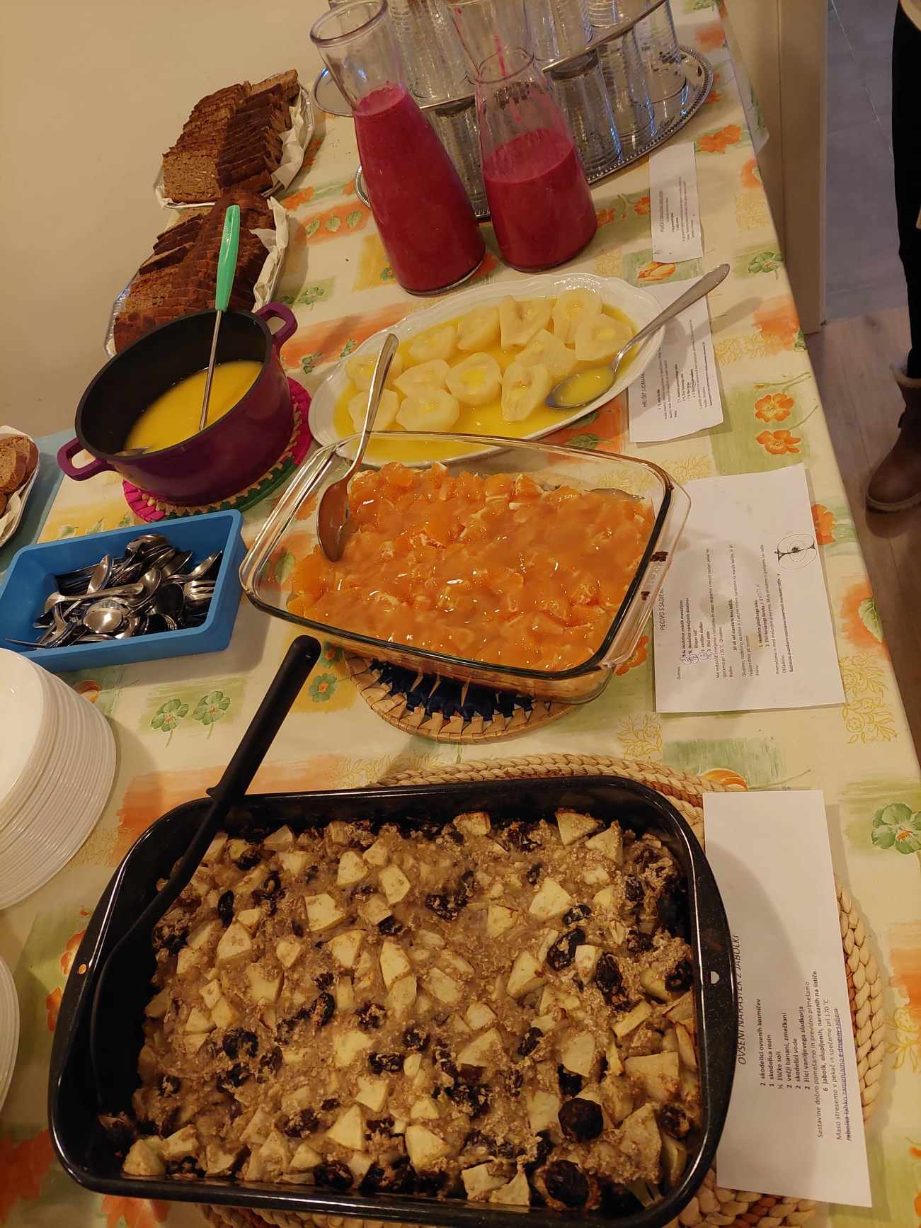 Ko je bila hrana pripravljena, so jo razpostavili po mizah skupaj z recepti, da so se najprej lahko napasle oči, da so se pričele cediti sline. Po zahvali Stvarniku za to obilje okusov, barv in dobrot, so se udeleženci posedli in zaužili pripravljeno hrano. Vsi so se strinjali, da je odlična.