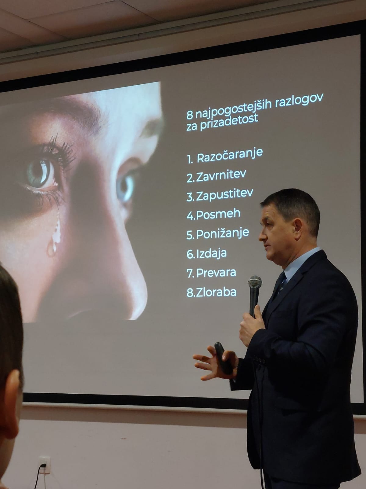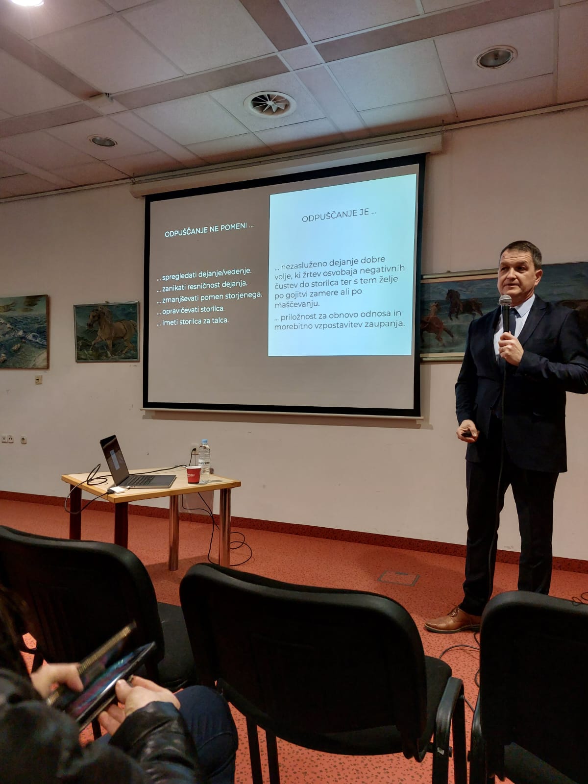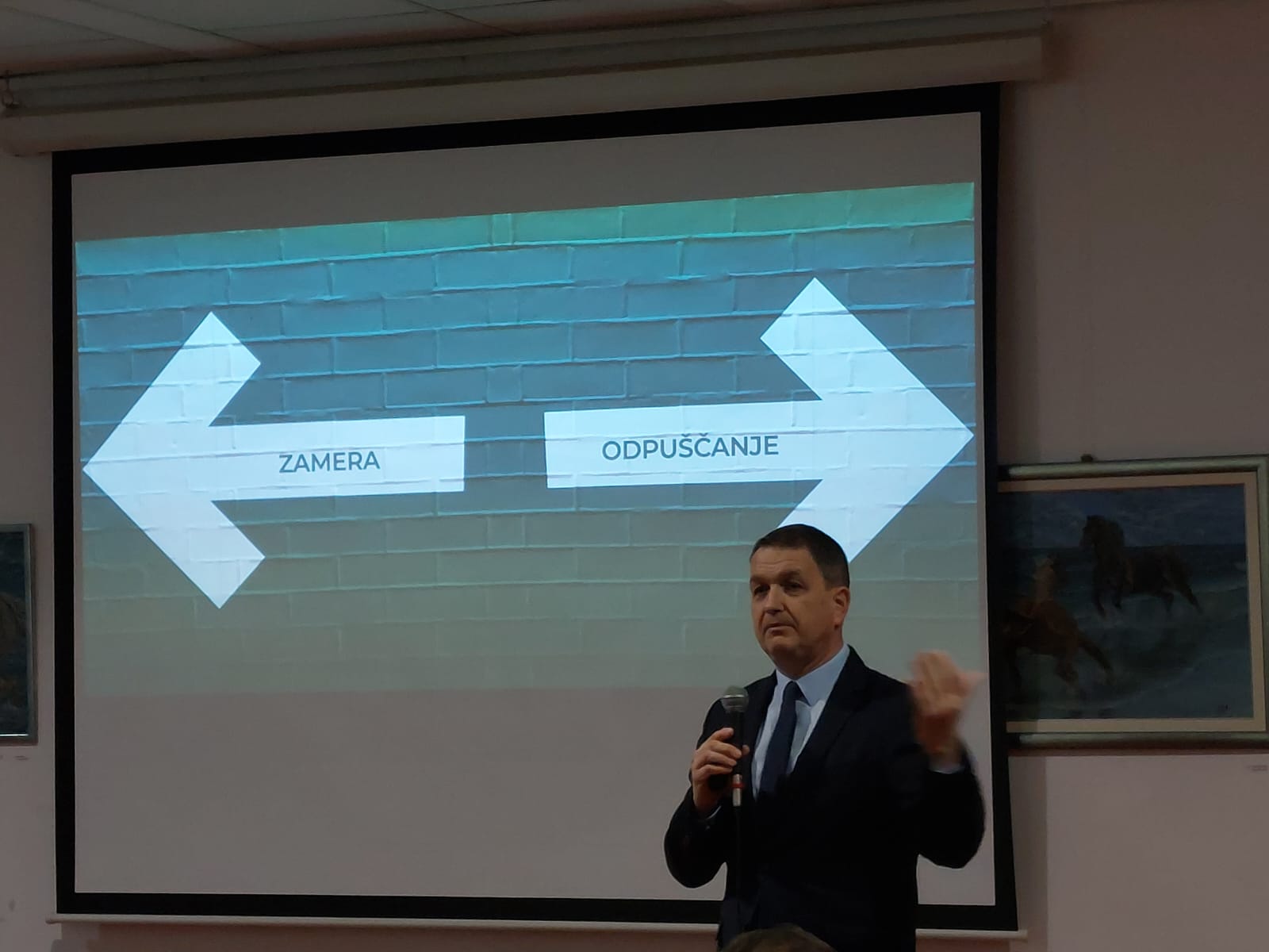 Predavatelj mag. Zmago Godina je predstavil možnost odločitve za zamero ali odpuščanje ter njene posledice. Spregovoril je o najpogostejših razlogih za prizadetost, predstavil kaj odpuščanje je in kaj ni ter na kakšen način to pokažemo.