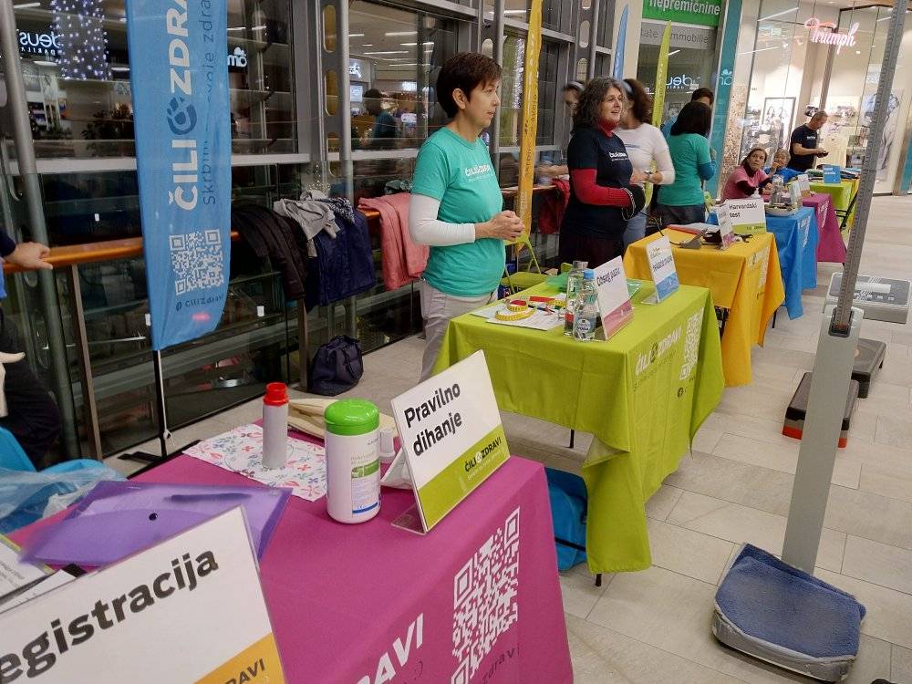 Prostovoljci so skupaj s strokovnjaki pripravili različne merilne postaje, kjer so obiskovalci lahko s pihanjem ugotovili kapaciteto svojih pljuč, si zmerili pritisk in pulz, preverili indeks telesne teže ter obseg pasu, izvedli harvardski test, izvedeli, kako pomembno se je zdravo prehranjevati in piti dovolj vode ter se gibati in hkrati tudi počivati, potem pa na koncu prejeli še uporabne nasvete strokovnjakinje.